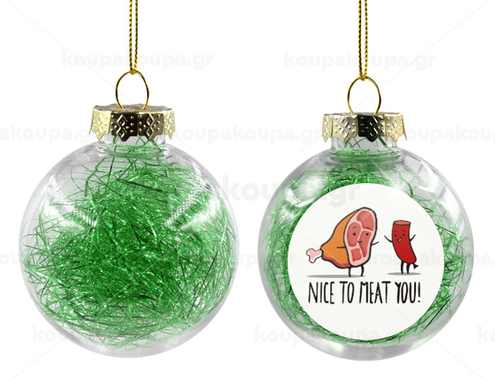 Nice to MEAT you, Transparent Christmas tree ball ornament with green filling 8cm