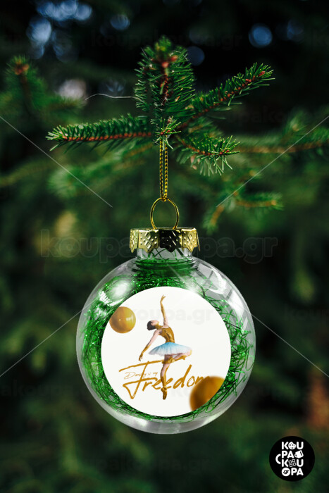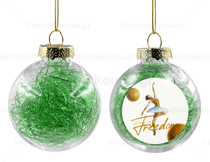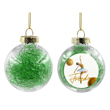 Gold Dancer, Transparent Christmas tree ball ornament with green filling 8cm