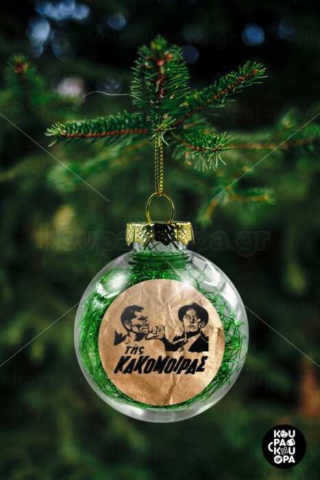 Tis kakomoiras, Transparent Christmas tree ball ornament with green filling 8cm