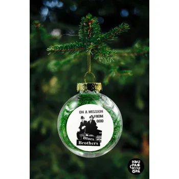 Blues brothers on a mission from God, Transparent Christmas tree ball ornament with green filling 8cm
