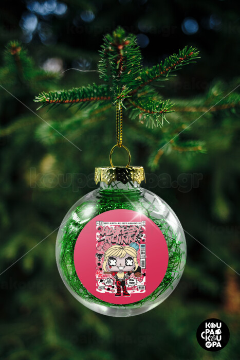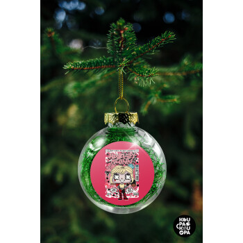 Harley Quinn (Χάρλεϊ Κουίν), Transparent Christmas tree ball ornament with green filling 8cm