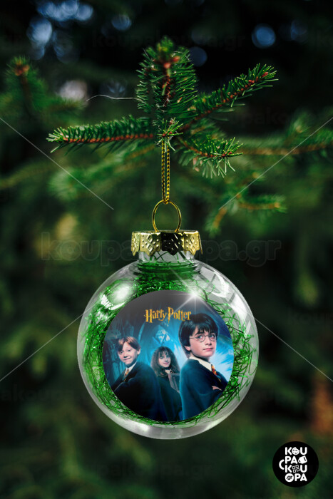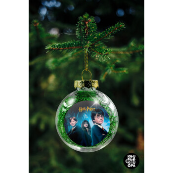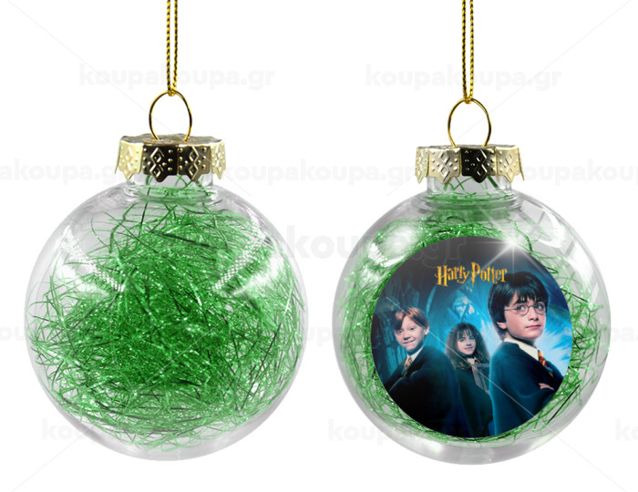 Harry potter and the philosopher's stone, Transparent Christmas tree ball ornament with green filling 8cm