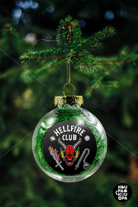 Hellfire CLub, Stranger Things, Transparent Christmas tree ball ornament with green filling 8cm