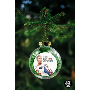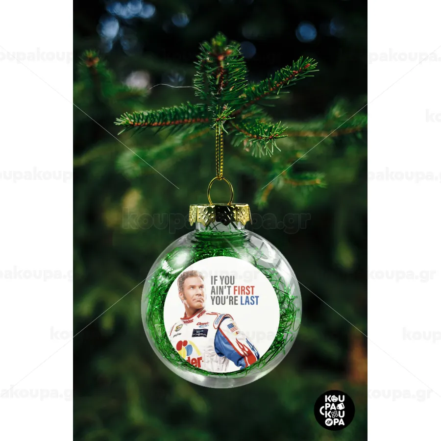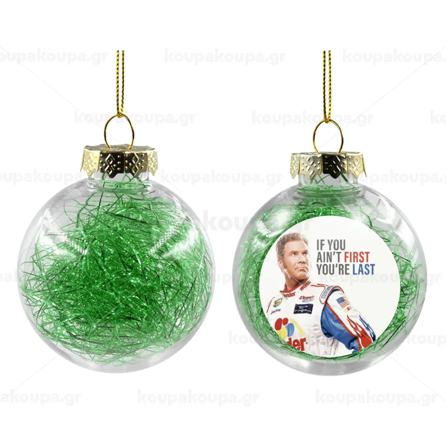 If You Ain't First You're Last Ricky Bobby, Talladega Nights, Transparent Christmas tree ball ornament with green filling 8cm