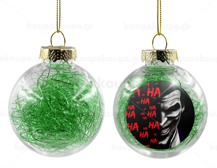 Joker hahaha, Transparent Christmas tree ball ornament with green filling 8cm