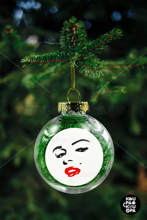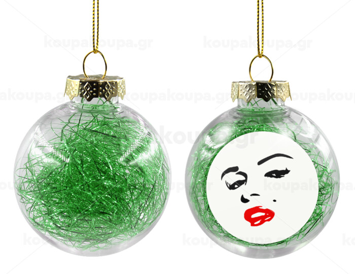 Marilyn Monroe, Transparent Christmas tree ball ornament with green filling 8cm