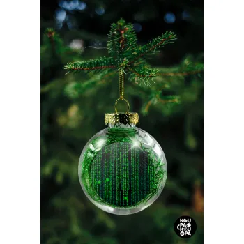 Matrix, Transparent Christmas tree ball ornament with green filling 8cm