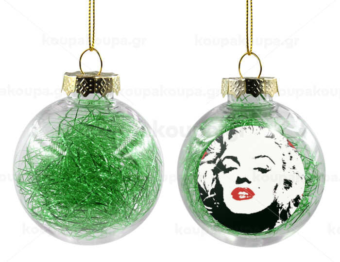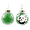 Merilin, Transparent Christmas tree ball ornament with green filling 8cm