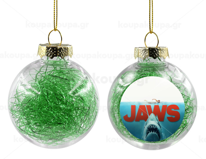 Shark jaws, Transparent Christmas tree ball ornament with green filling 8cm