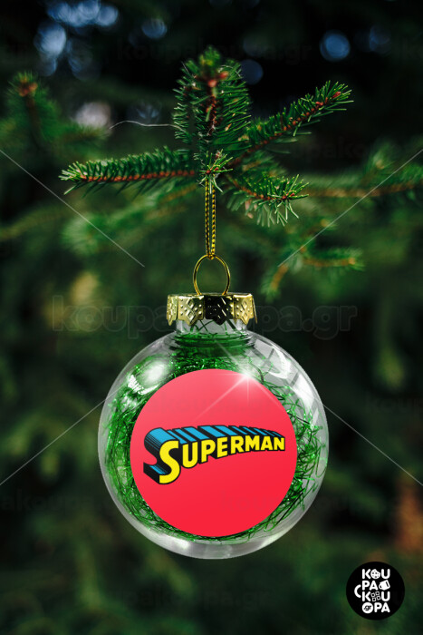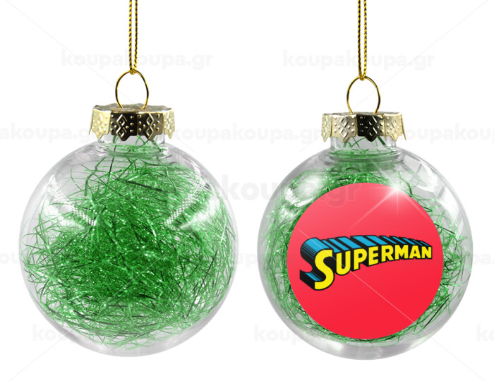 Superman vintage, Transparent Christmas tree ball ornament with green filling 8cm