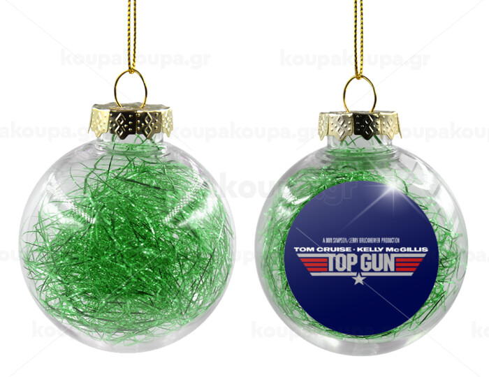 Top Gun, Transparent Christmas tree ball ornament with green filling 8cm