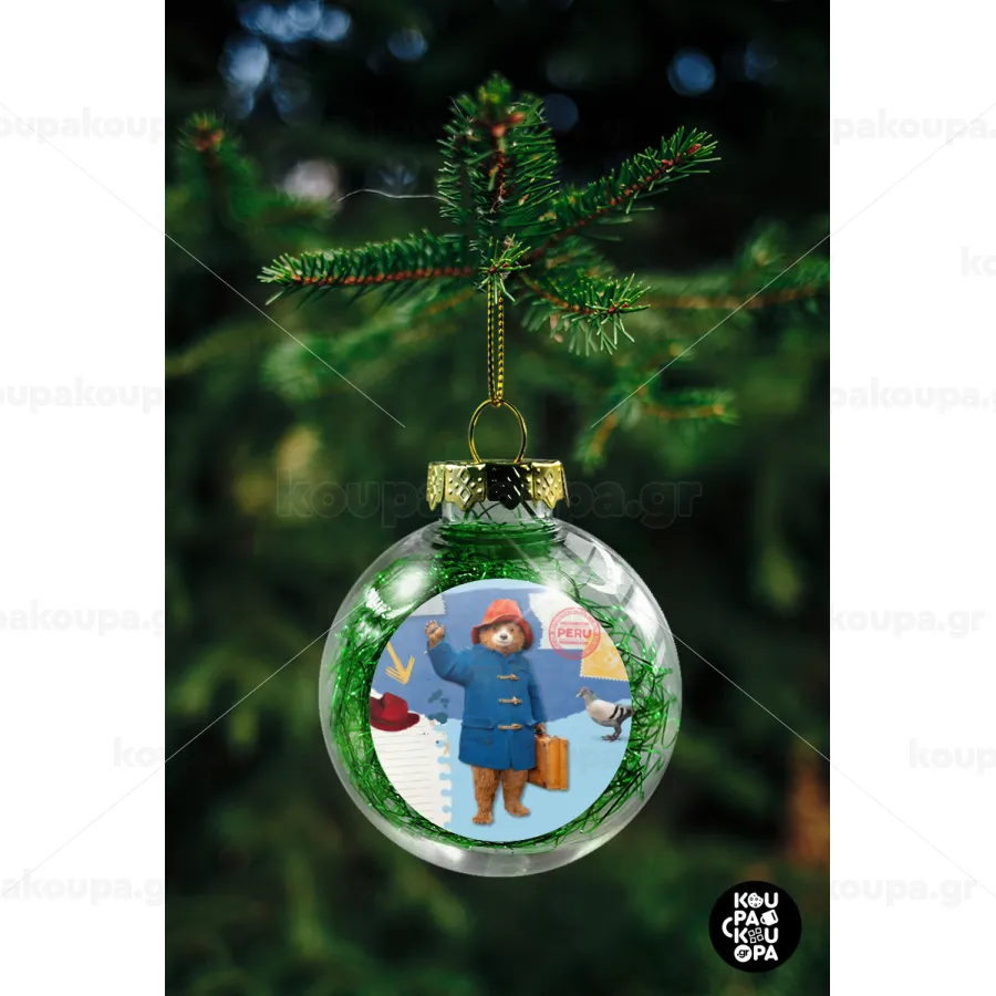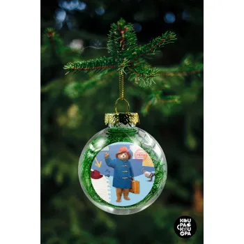 Αρκουδάκι Πάντινγκτον, Transparent Christmas tree ball ornament with green filling 8cm