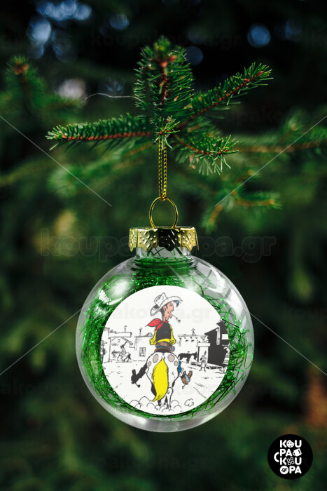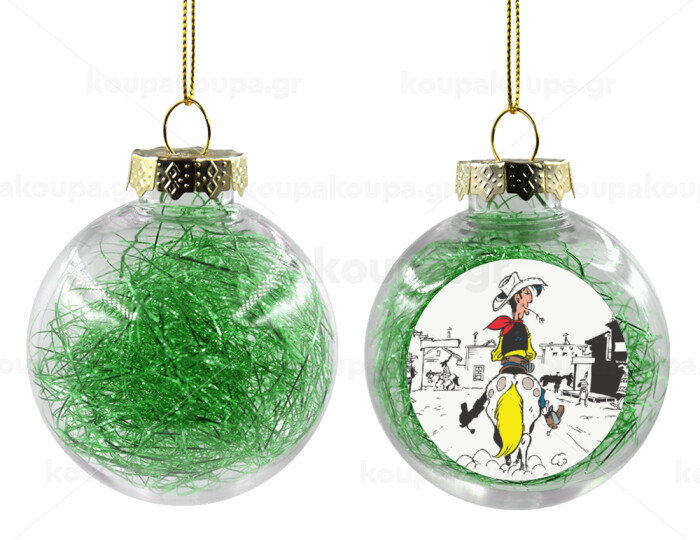 Lucky Luke comic, Transparent Christmas tree ball ornament with green filling 8cm