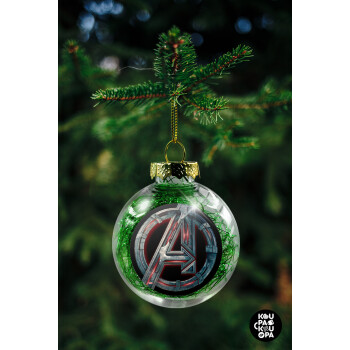 Avengers, Transparent Christmas tree ball ornament with green filling 8cm