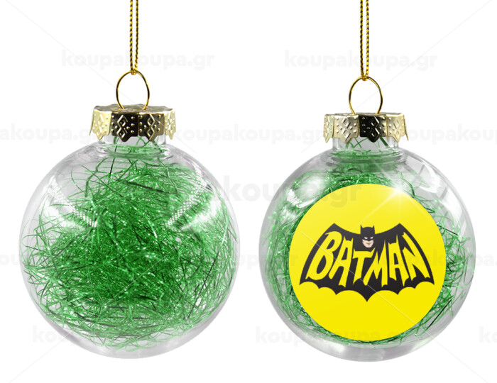 Batman classic logo, Transparent Christmas tree ball ornament with green filling 8cm