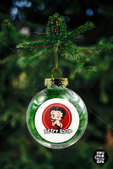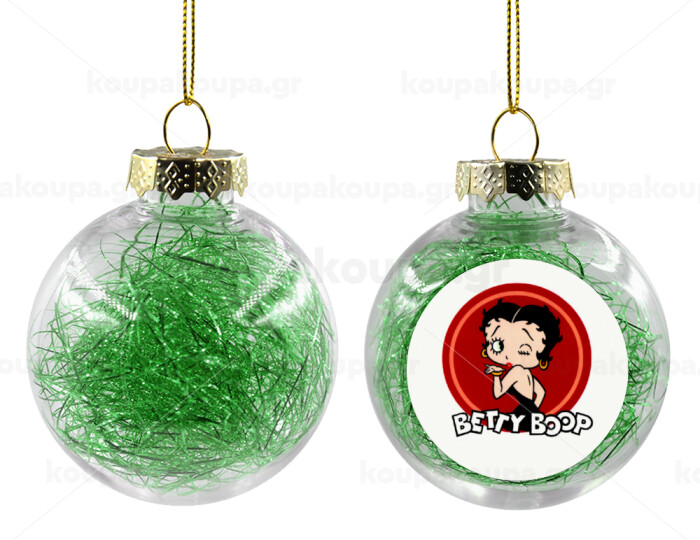 Betty Boop kiss, Transparent Christmas tree ball ornament with green filling 8cm