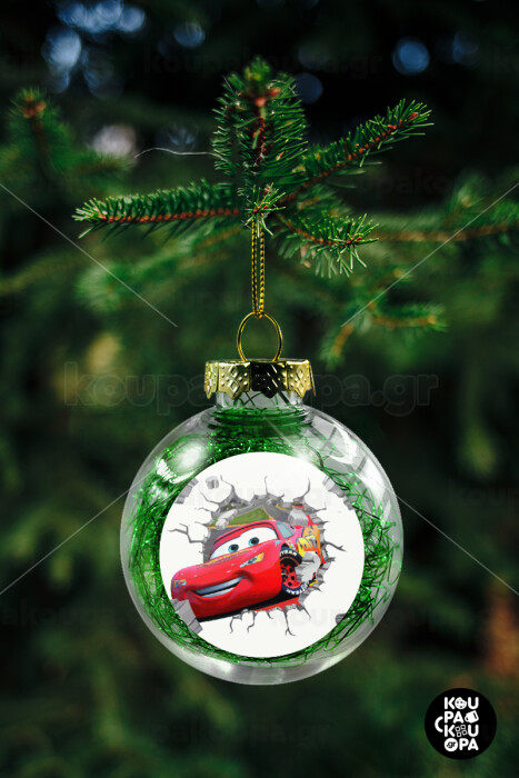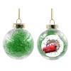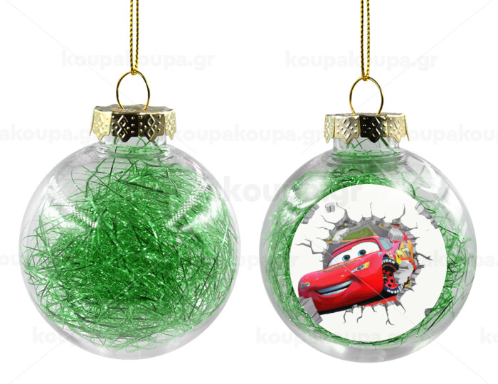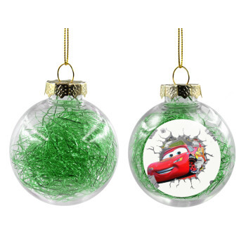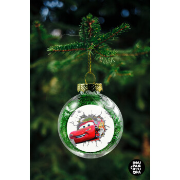 Brick McQueen, Transparent Christmas tree ball ornament with green filling 8cm