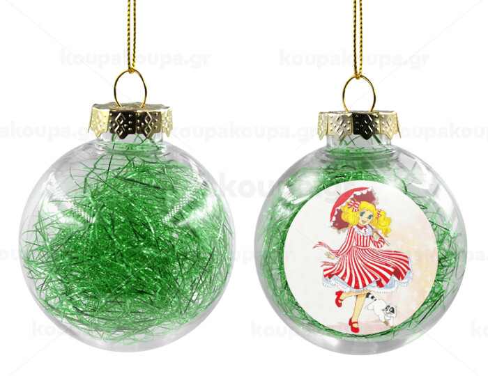 Candy, Transparent Christmas tree ball ornament with green filling 8cm