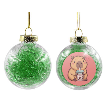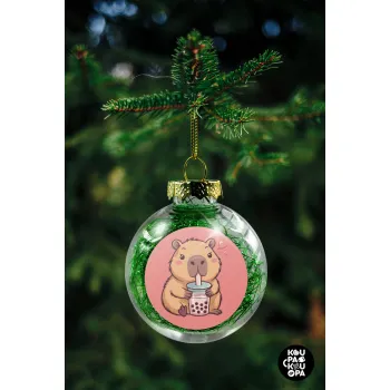 Capybara Bubble Tea, Transparent Christmas tree ball ornament with green filling 8cm