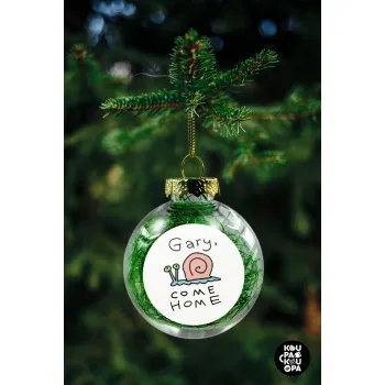 Gary come home, Transparent Christmas tree ball ornament with green filling 8cm