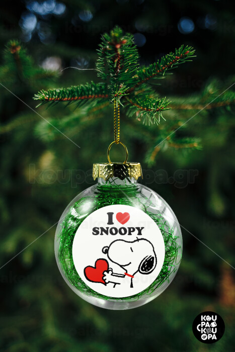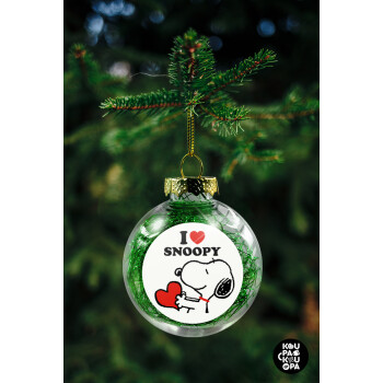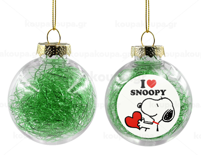 I LOVE SNOOPY, Transparent Christmas tree ball ornament with green filling 8cm