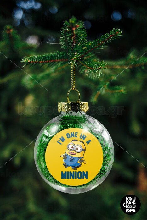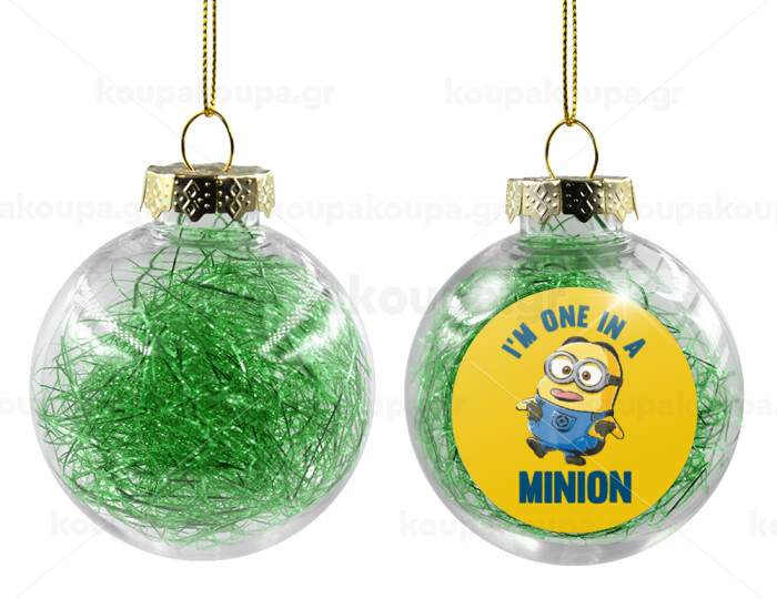 I'm one in a minion, Transparent Christmas tree ball ornament with green filling 8cm