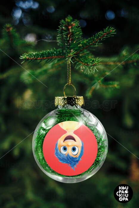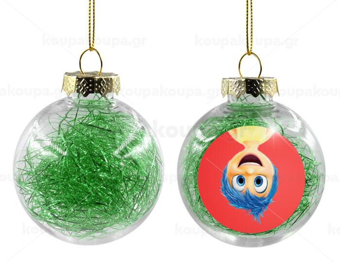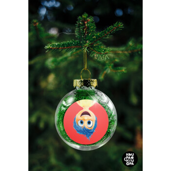 joy, Transparent Christmas tree ball ornament with green filling 8cm