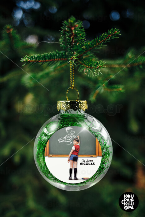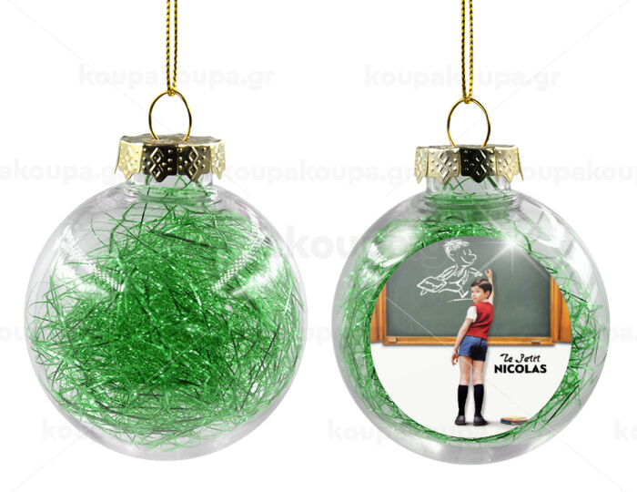 Le Petit Nicolas, Transparent Christmas tree ball ornament with green filling 8cm