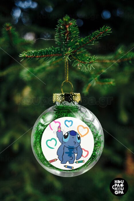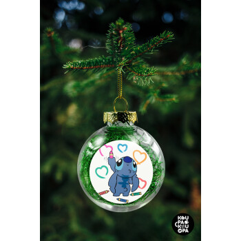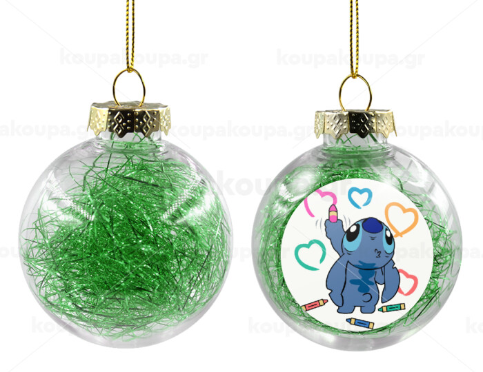 Lilo & Stitch painting, Transparent Christmas tree ball ornament with green filling 8cm