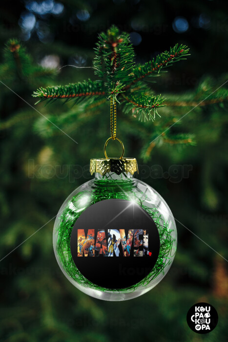 MARVEL Black, Transparent Christmas tree ball ornament with green filling 8cm