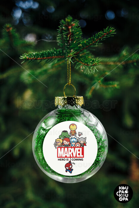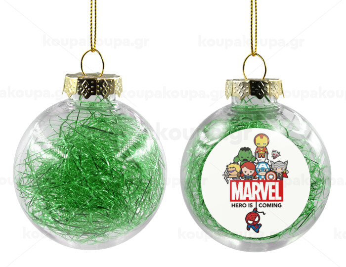 MARVEL, Transparent Christmas tree ball ornament with green filling 8cm