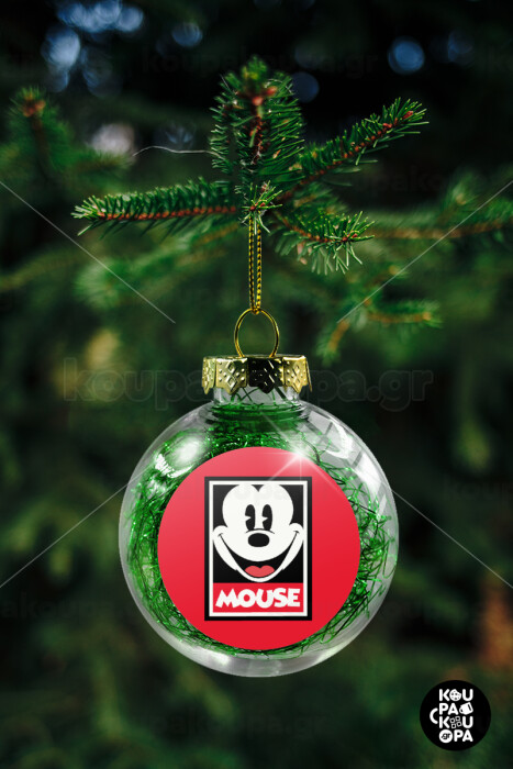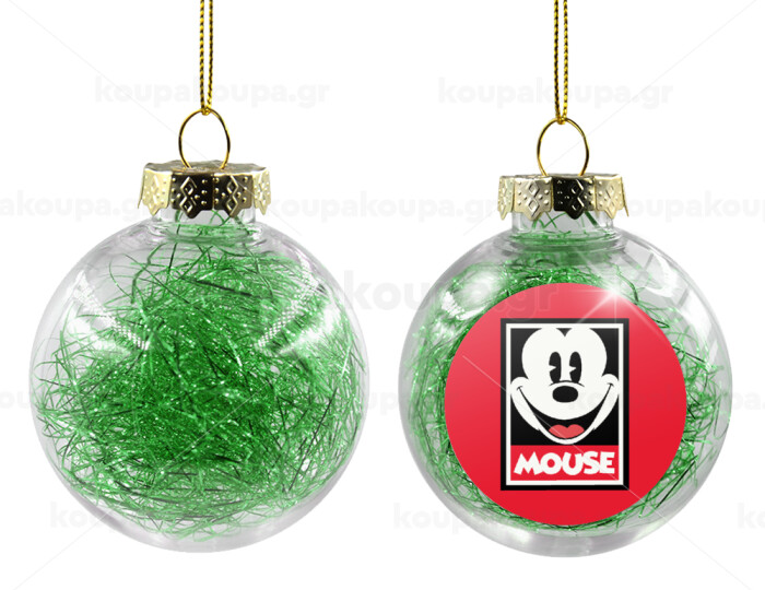 Mickey Mouse, Transparent Christmas tree ball ornament with green filling 8cm