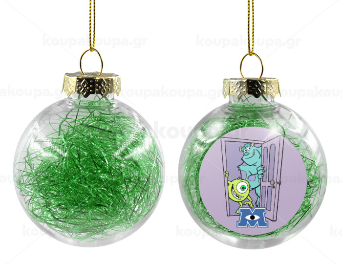 Monster inc, Transparent Christmas tree ball ornament with green filling 8cm