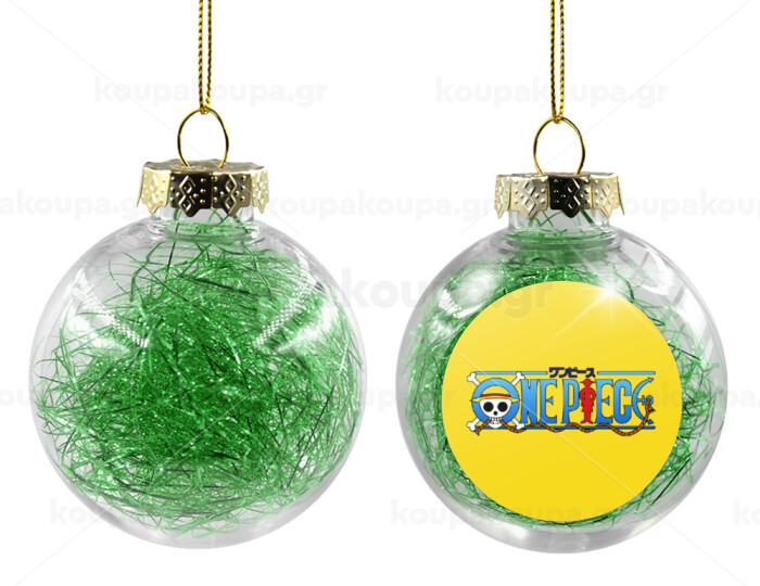 Onepiece logo, Transparent Christmas tree ball ornament with green filling 8cm
