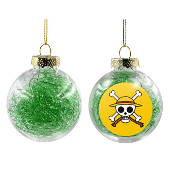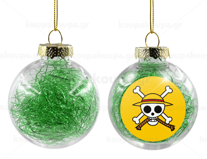 Onepiece skull, Transparent Christmas tree ball ornament with green filling 8cm