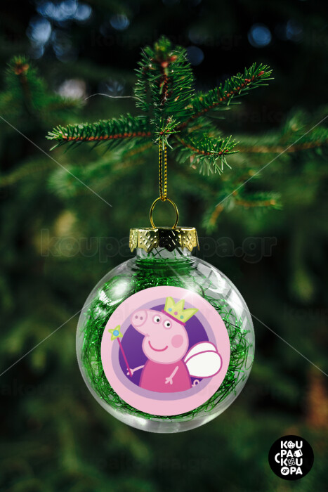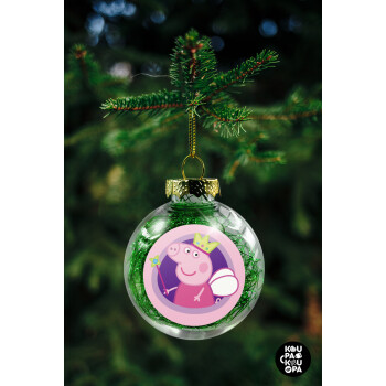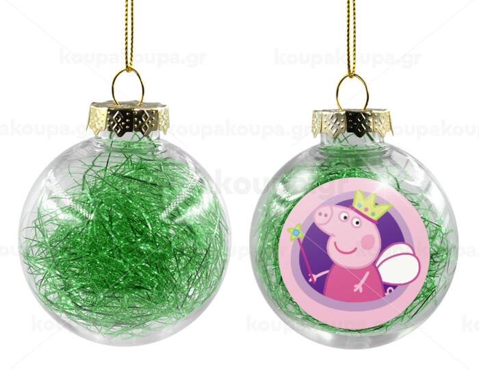 Peppa pig Queen, Transparent Christmas tree ball ornament with green filling 8cm