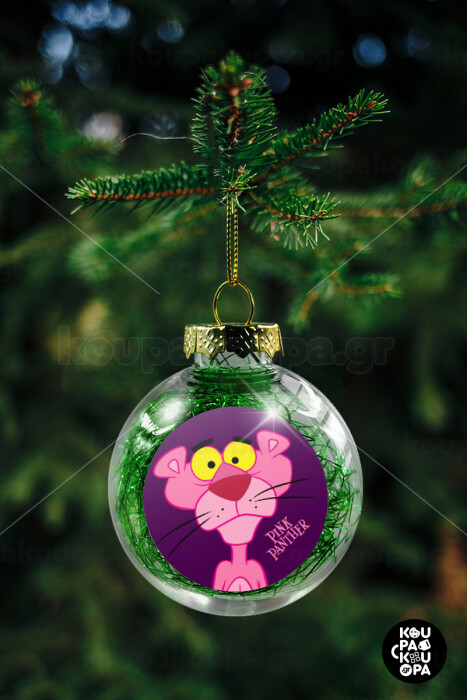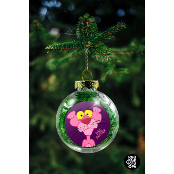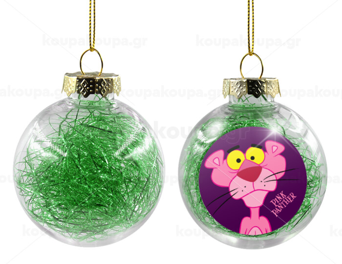 Pink Panther cartoon, Transparent Christmas tree ball ornament with green filling 8cm