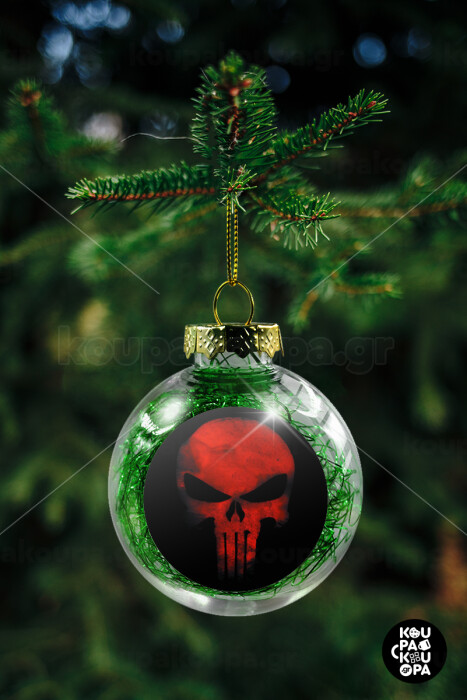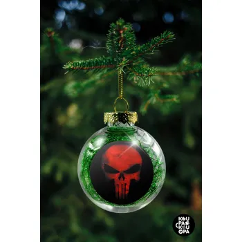 Red skull, Transparent Christmas tree ball ornament with green filling 8cm
