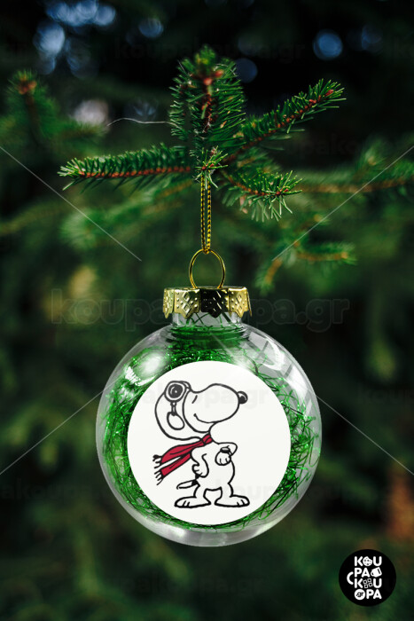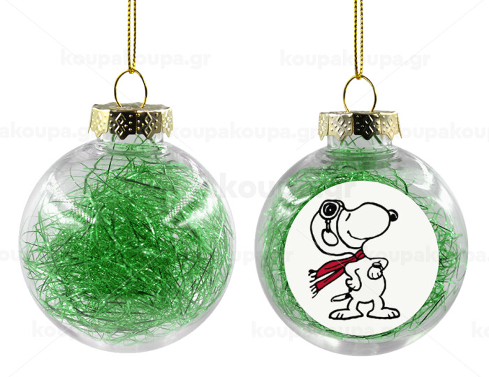 Snoopy ο πιλότος, Transparent Christmas tree ball ornament with green filling 8cm