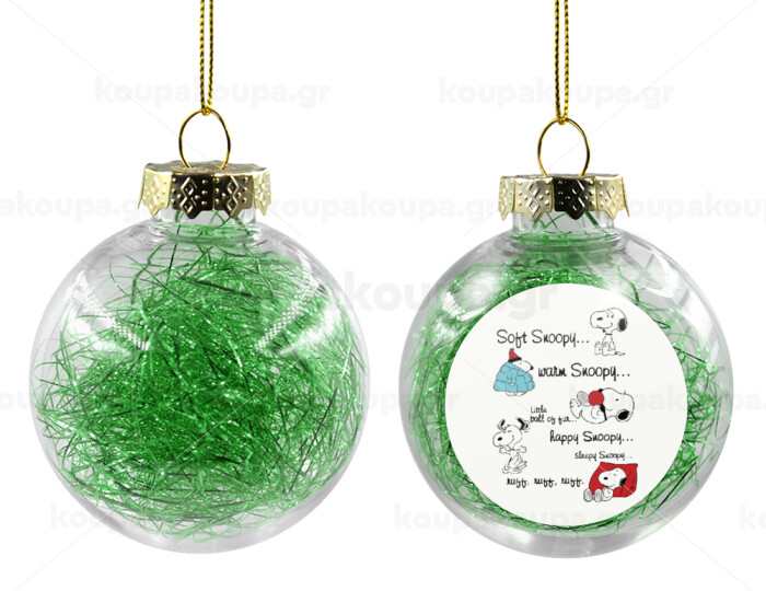 Snoopy manual, Transparent Christmas tree ball ornament with green filling 8cm