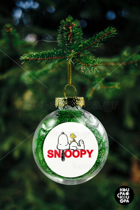Snoopy sleep, Transparent Christmas tree ball ornament with green filling 8cm