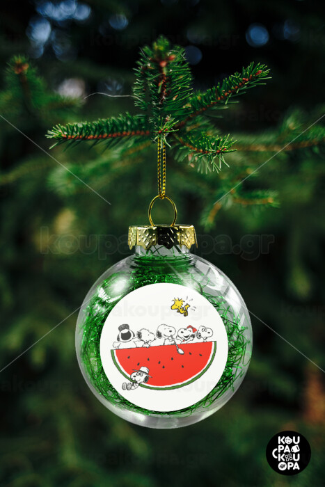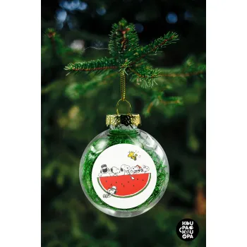 Snoopy summer, Transparent Christmas tree ball ornament with green filling 8cm