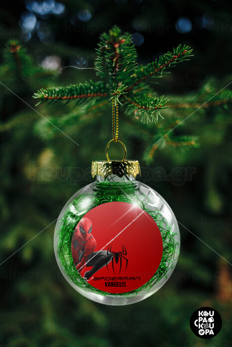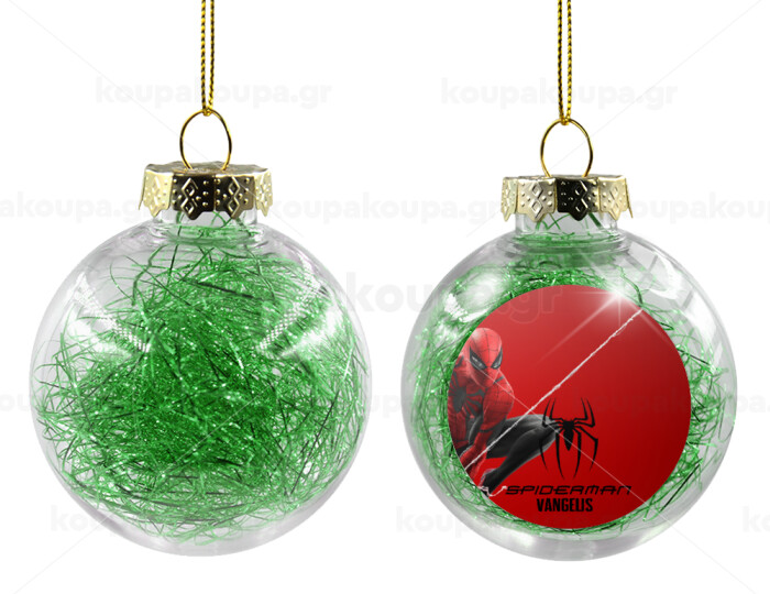 Spiderman, Transparent Christmas tree ball ornament with green filling 8cm