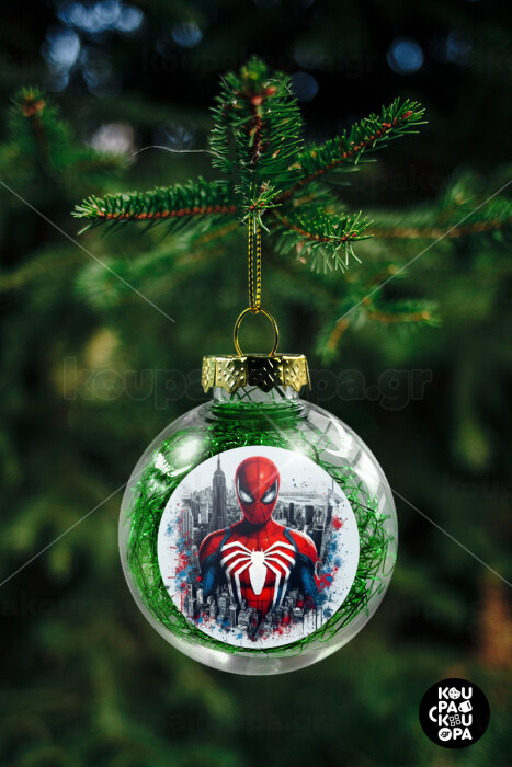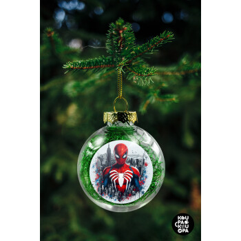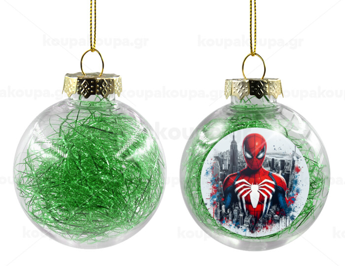 Spiderman City, Transparent Christmas tree ball ornament with green filling 8cm