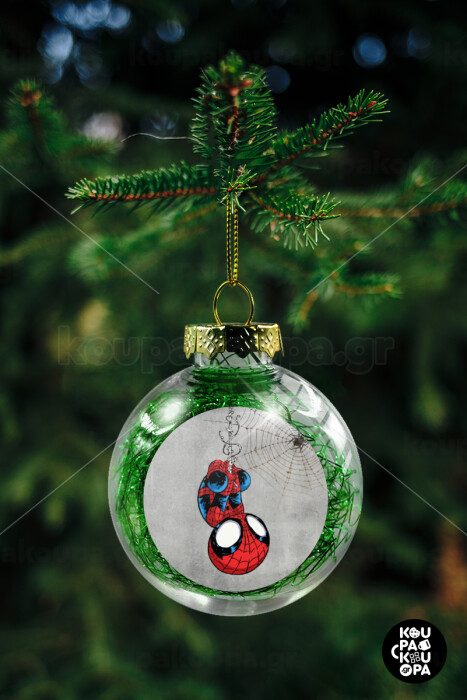 Spiderman upside down, Transparent Christmas tree ball ornament with green filling 8cm