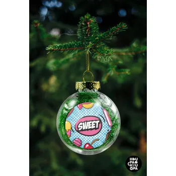 SWEET, Transparent Christmas tree ball ornament with green filling 8cm