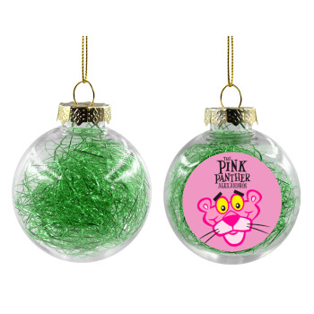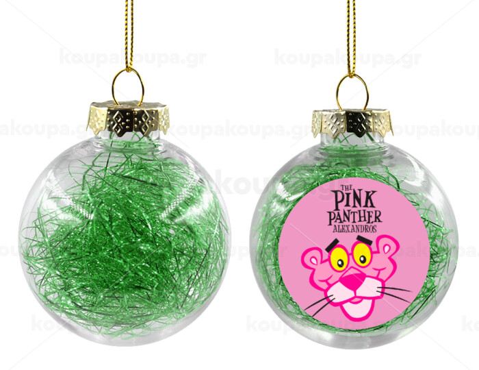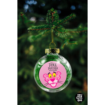 The pink panther, Transparent Christmas tree ball ornament with green filling 8cm