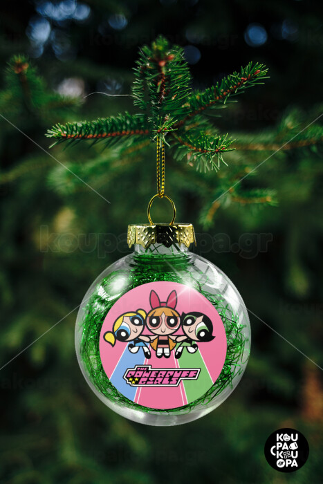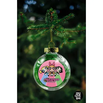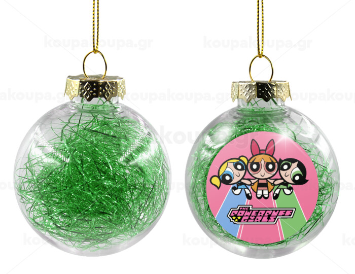 The powerpuff girls , Transparent Christmas tree ball ornament with green filling 8cm