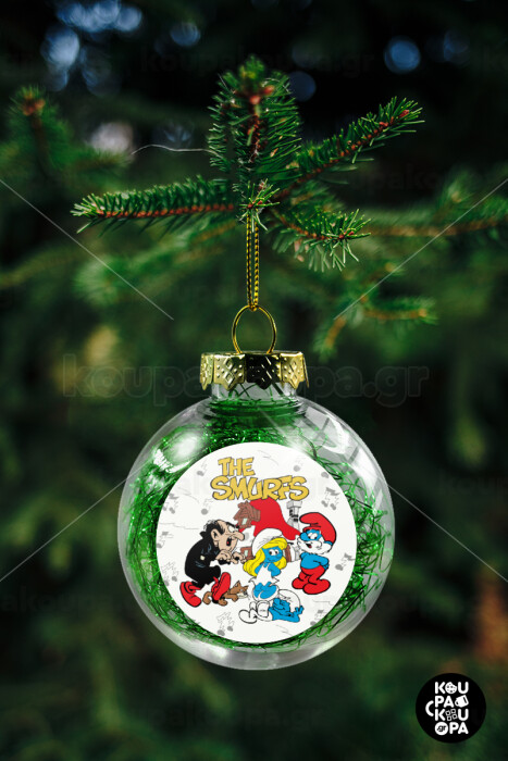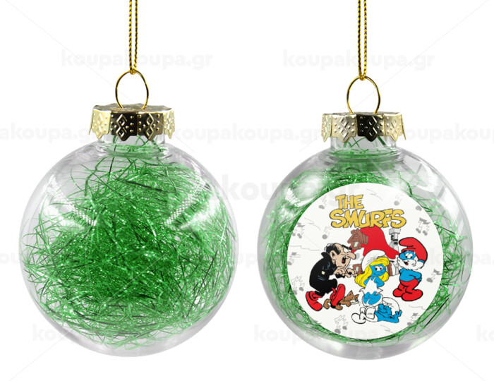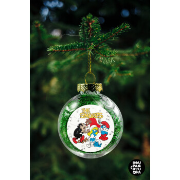 The smurfs, Transparent Christmas tree ball ornament with green filling 8cm