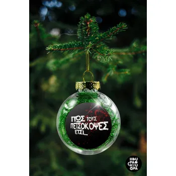 Πως τους πετσόκοψες έτσι..., Transparent Christmas tree ball ornament with green filling 8cm